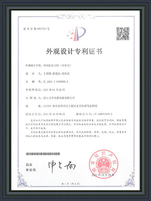 Patentzertifikat für das Aussehensdesign